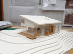 Click through the slides above to view the finished house and select drawings, or scroll through the filmstrip below to follow the context, design and construction. |